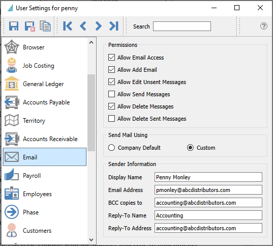 Once the email integration is set up then the legacy settings will no longer be used. Companies now created in Spire will not display or provide access to these legacy settings. Spire now retains sent emails in the Communication module so it is no longer required to track sent messages in another email program’s Sent Items.